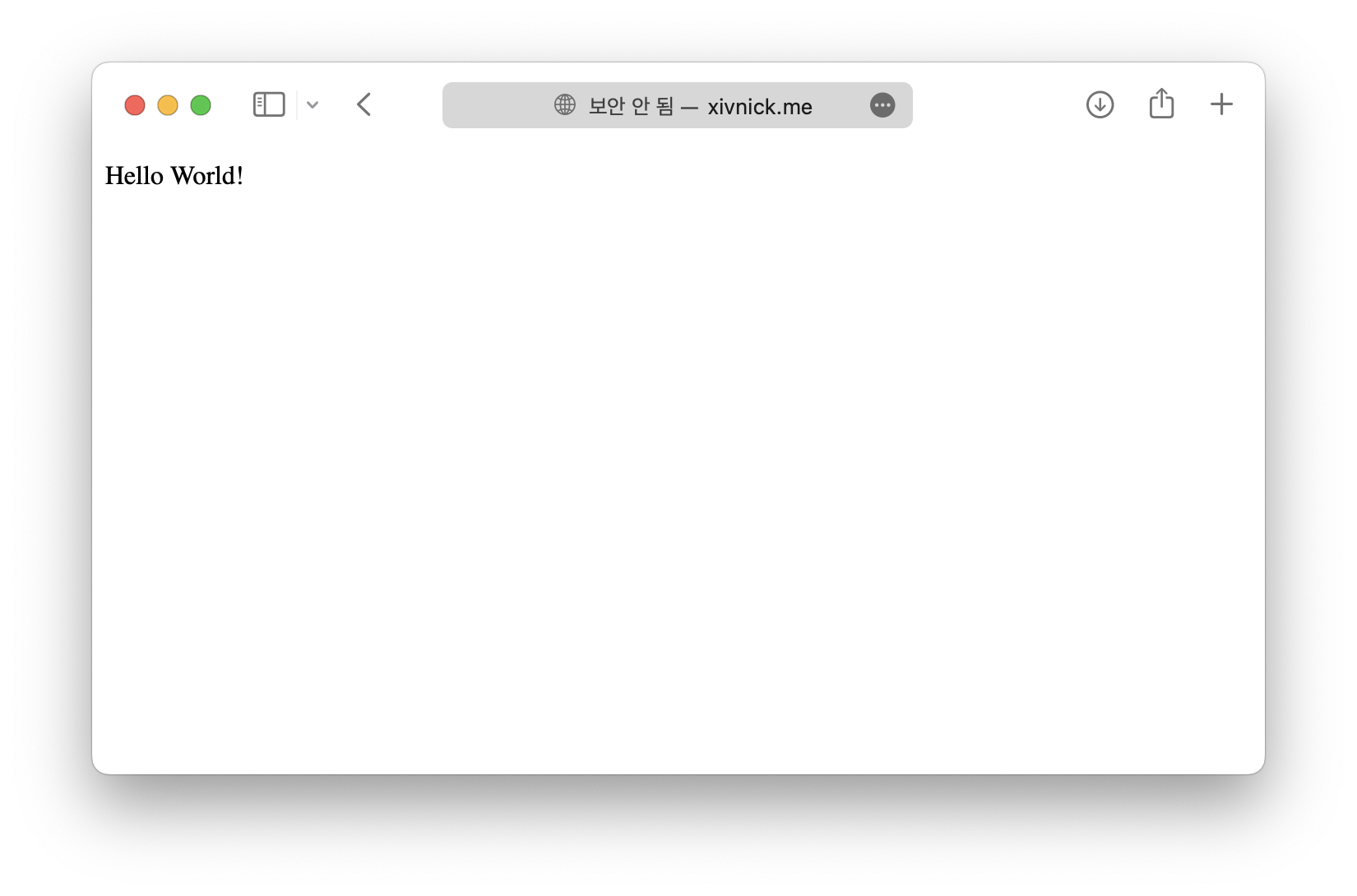 위 명령어로 nginx를 재시작하면 test.xivnick.me로 접속해서 nodejs의 Hello World! 를 확인할 수 있다!