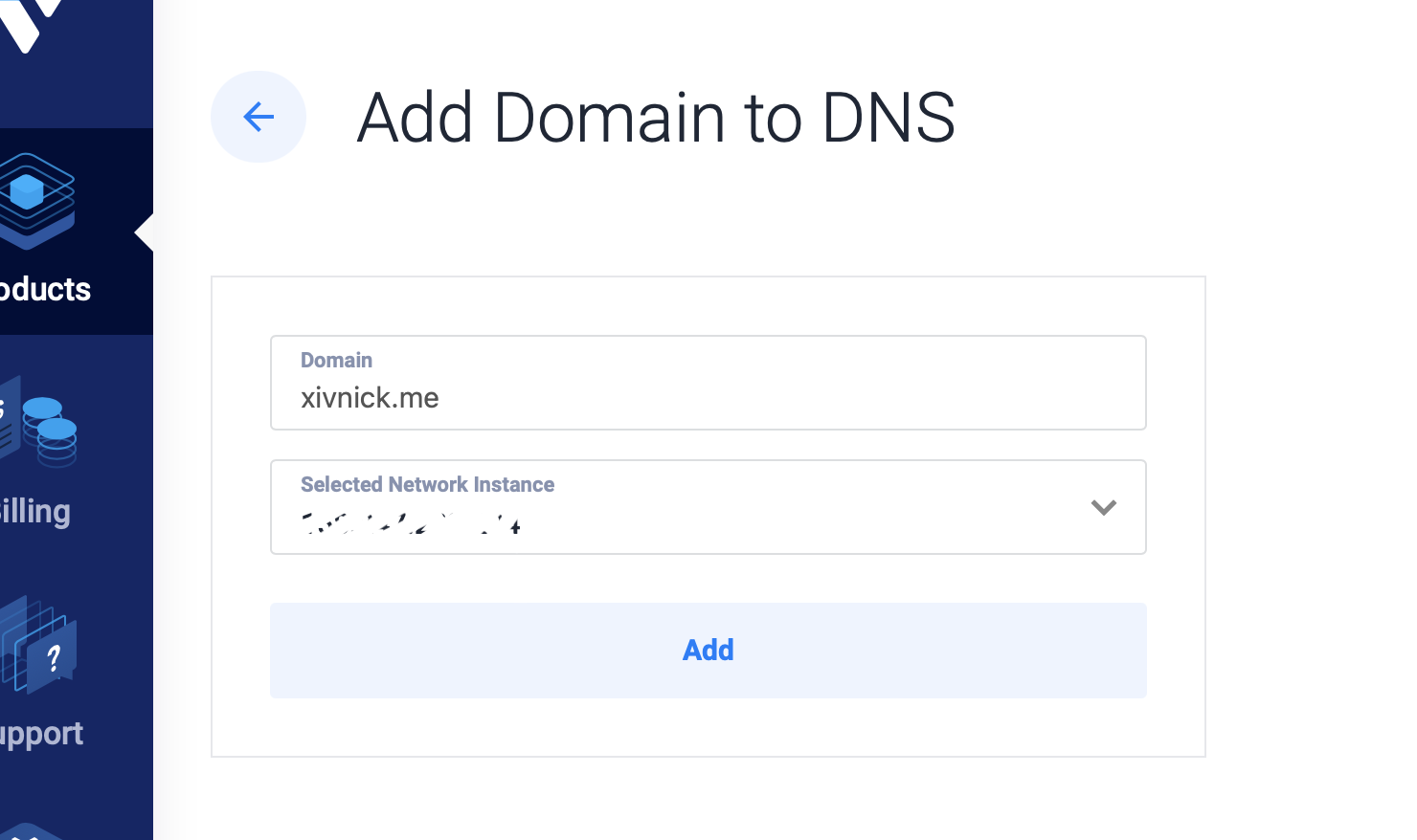 Vultr에서 Product-DNS 탭으로 들어가 새 도메인을 추가한다.
